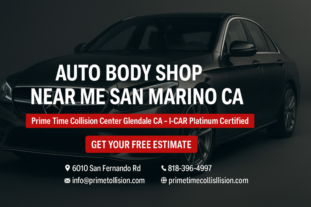 Serving Glendale, San Marino, Burbank, and nearby neighborhoods like Adams Hill, Rossmoyne, and Eagle Rock, Prime Time Collision Center delivers professional, certified repairs trusted across Los Angeles County.