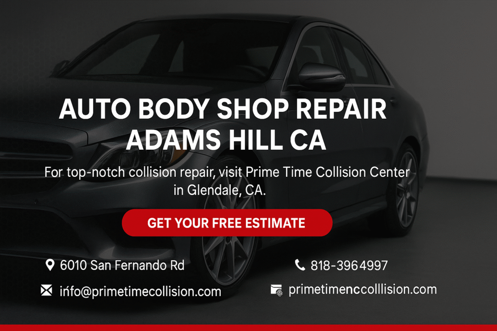 Serving Glendale, Adams Hill, Burbank, and nearby neighborhoods like Verdugo Woodlands, Rossmoyne, and Eagle Rock, Prime Time Collision Center delivers professional, certified repairs trusted across Los Angeles County.
