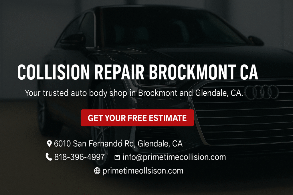 Serving Glendale, Brockmont, Burbank, and nearby neighborhoods like Verdugo Woodlands, Rossmoyne, and Montrose, Prime Time Collision Center delivers professional, certified repairs trusted across Los Angeles County.