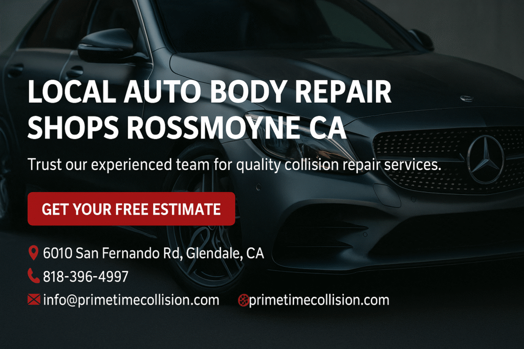 Need help after an accident? Contact Prime Time Collision Center at (818) 396-4997 or email info@primetimecollision.com. Visit www.primetimecollision.com to learn more about our auto body repair services, including the Local Auto Body Repair Shops Rossmoyne CA and other locations throughout Glendale and surrounding neighborhoods.