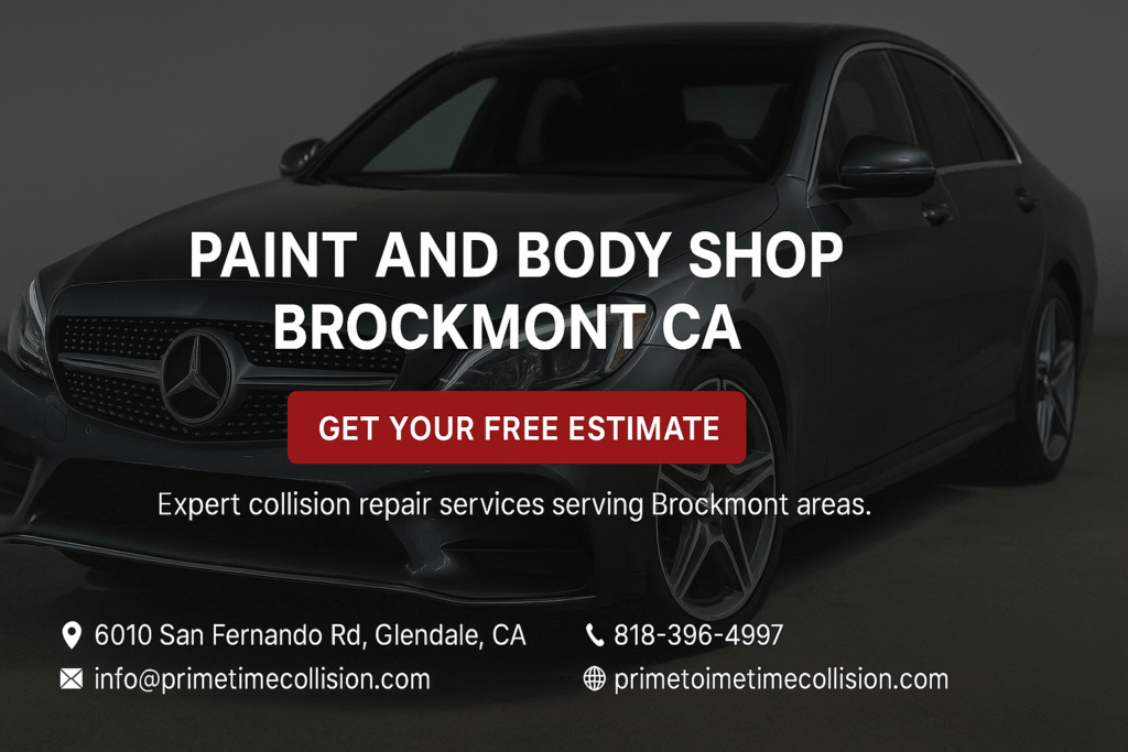 Serving Glendale, Brockmont CA, Burbank, and nearby neighborhoods like Rossmoyne, Montrose, and Chevy Chase Canyon, Prime Time Collision Center delivers professional, certified repairs trusted across Los Angeles County. For residents in neighboring areas, see our Paint And Body Shop Verdugo Viejo CA, Paint And Body Shop Sparr Heights CA, and Paint And Body Shop Emerald Isle CA services. We also specialize in Auto Body Repair Near Me Brockmont CA and surrounding communities to ensure quick, quality service.